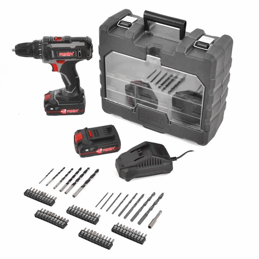 Hecht 1248 akkus fúró-csavarozó (2 x 2.0 Ah Li-ion akkuval, tartozékokkal kofferben)