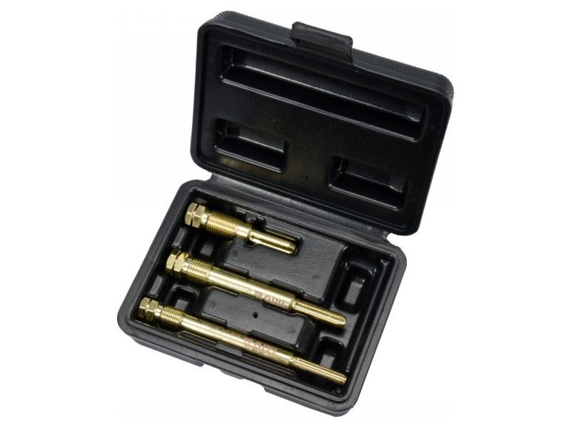 Professzionális három részes dörzsáró készlet a gyertyahelyek tisztításához, amit új gyertyák hengerfejbe történő beépítése előtt használnak.