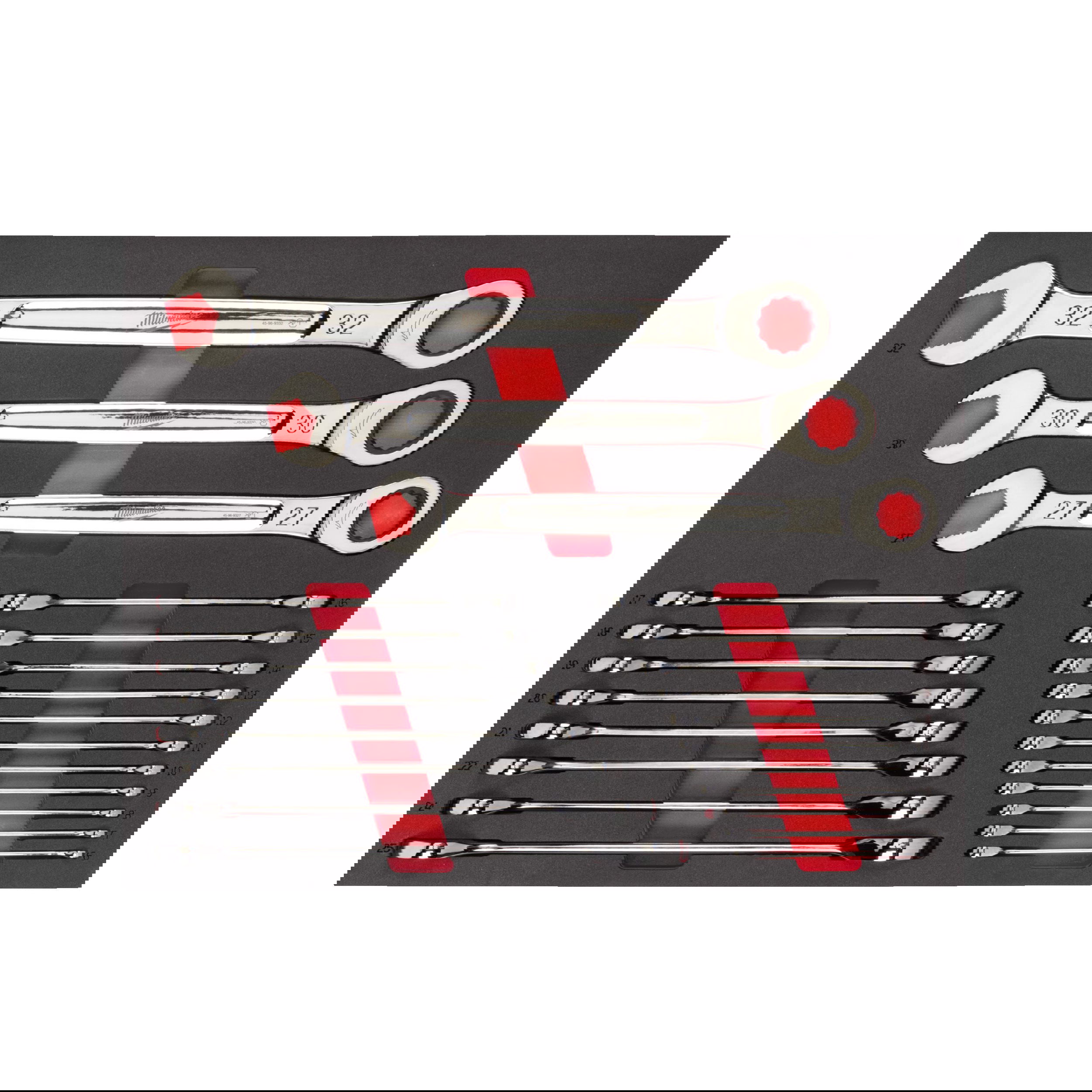 Milwaukee MAX BITE™ racsnis csillag-villáskulcs készlet habbetétben, metrikus, 22 darabos